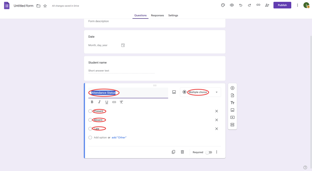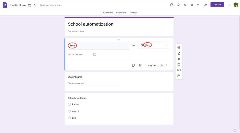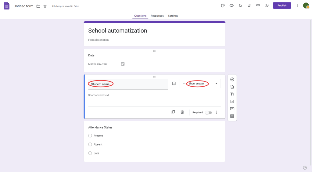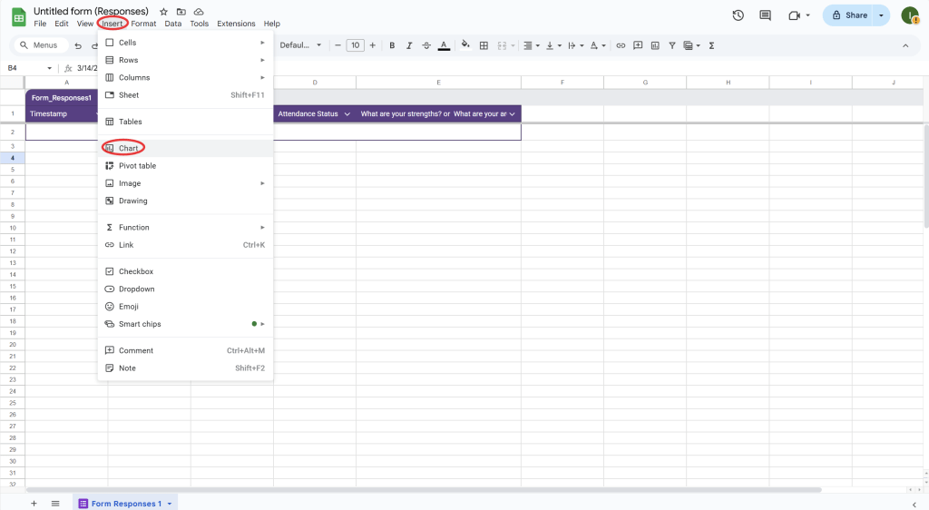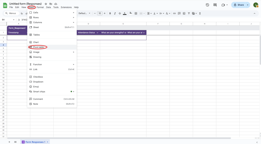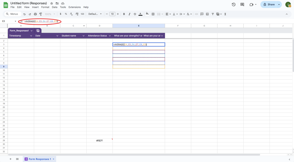 - If you want to auto-fill certain fields, use Google Sheets scripts to automate repetitive tasks. For example, you can write a Google Apps Script to automatically enter the date or student name based on other responses in the sheet.