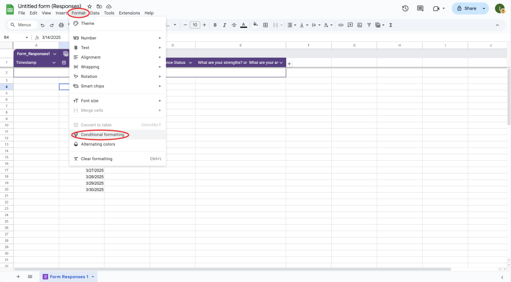 - Using Google Sheets’ conditional formatting, you can highlight certain data points, such as missing attendance or low evaluation scores, to quickly address important items.