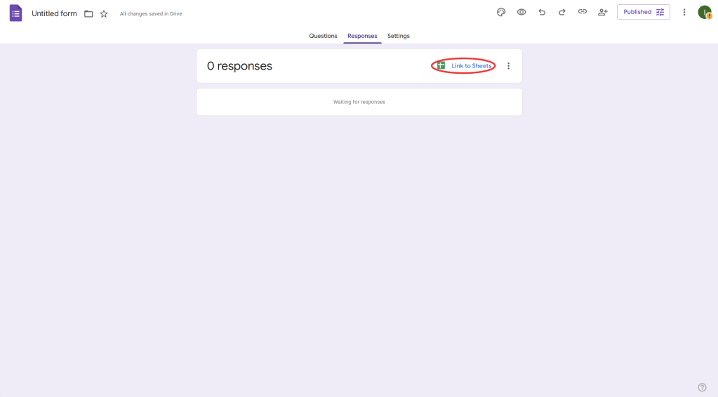 - Click the green Sheets icon to link the form to a new or existing Google Sheets document.