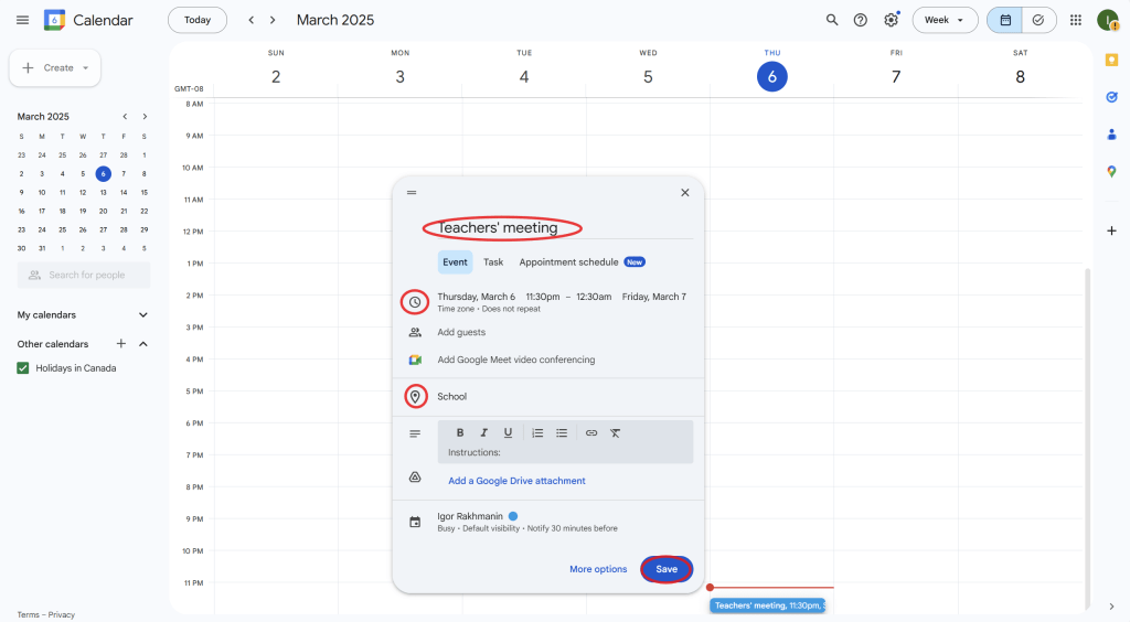 Using Google Calendar is an excellent way to manage and organize important events such as school meetings, deadlines, or parent-teacher conferences. You can easily set reminders, invite guests, and sync the calendar with other Google tools like Google Meet for virtual meetings. With real-time notifications, Google Calendar helps ensure that you don’t miss any important events.