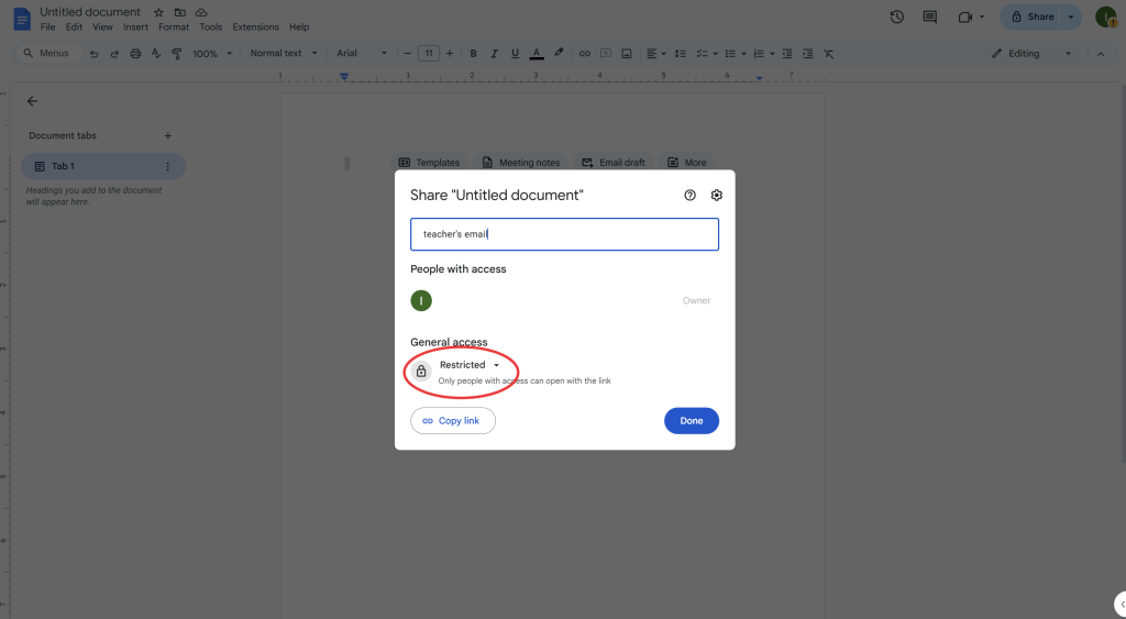 - Once your document is ready, click the “Share” button located in the top-right corner.
