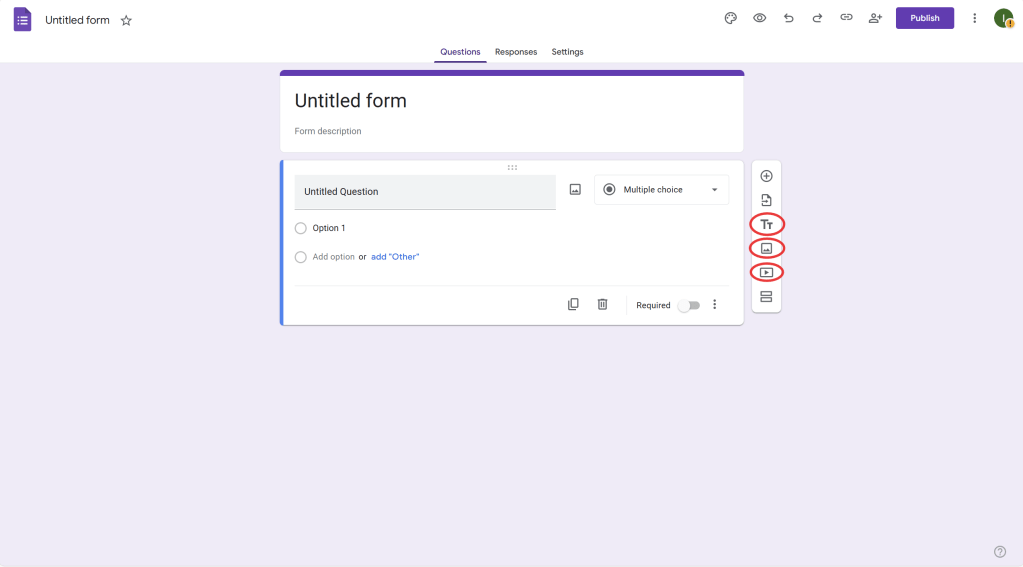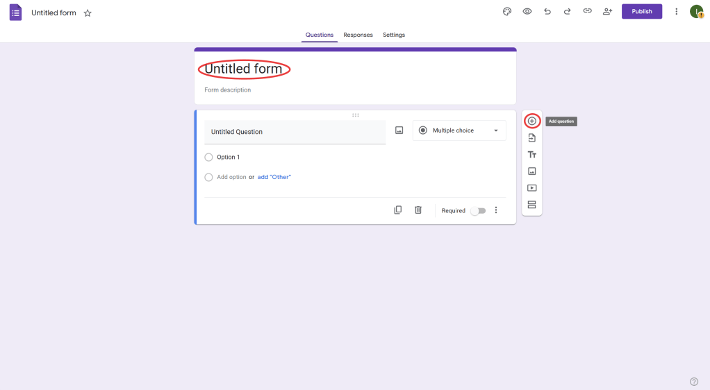 - In the new form, you’ll see the “Untitled Question” section. Here, you can type your first question.