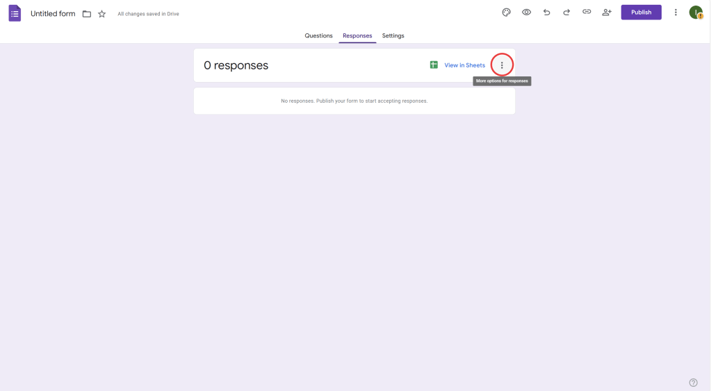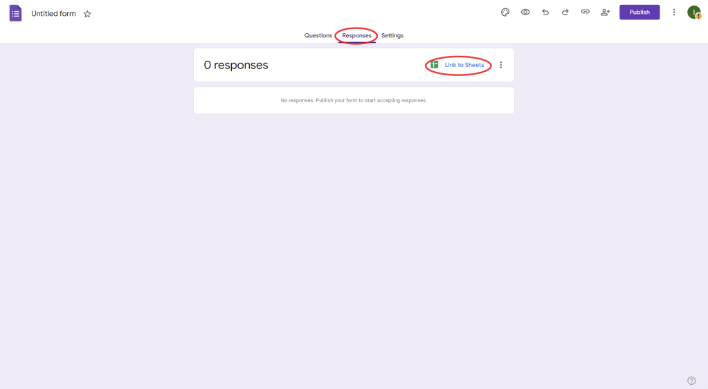 - Once your form is ready, click the “Responses” tab at the top of the form editor.