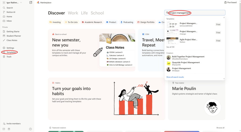 Start by creating a page in Notion for managing your school projects or administrative tasks. You can use templates like Project Management or Task List templates, or simply create a new page. - Add Your Tasks: